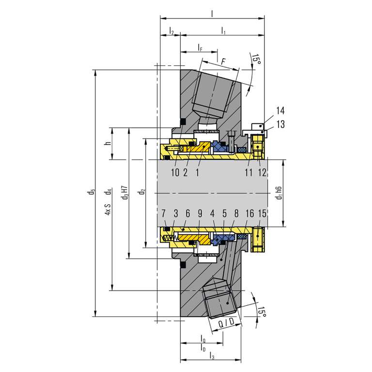 Mating ring: Silicon carbide SSiC (Q1), antimony impregnated carbon graphite (B)